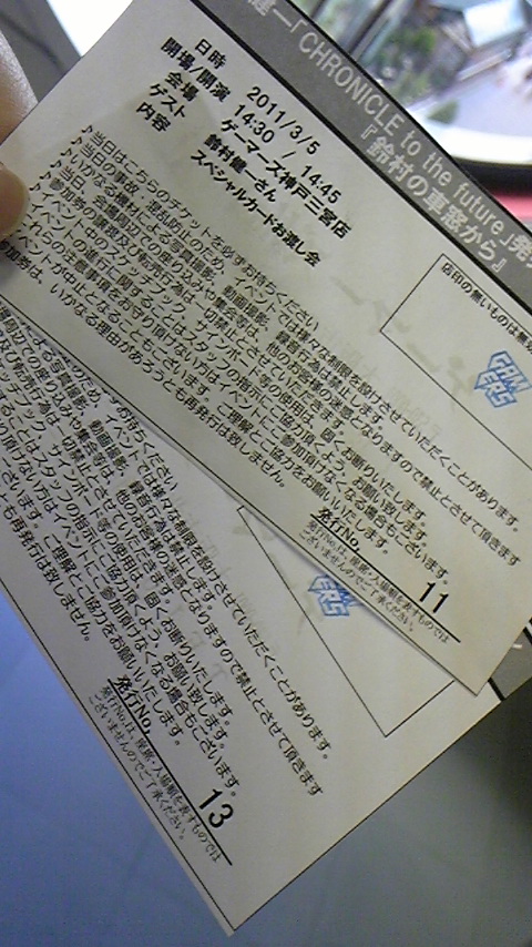 行ってきましたすずさんアルバム発売記念イベントー! 直前過ぎるんですよ発表がー!(>_<) しかもその店でしか参加券配布しないとか! 三宮遠いよ…orz というわけで計3箇所あるお渡しの1箇所に行ってきました(笑) 渡してくれるカードの出来はすっごいよかった! 写真も好きな感じでしたし(>ω<) でも今回多分急にスケジュール入れたんじゃないですかね~疲れてるっぽかったから(^_^;) 失恋ソングが早く聞きたいですって言っときましたwww 写メ2枚目は会場付近をうろついてたら見つけたクレープのお店w 何か他にないっぽかったし変わった形だったのでつい買っちゃったのでしたwww