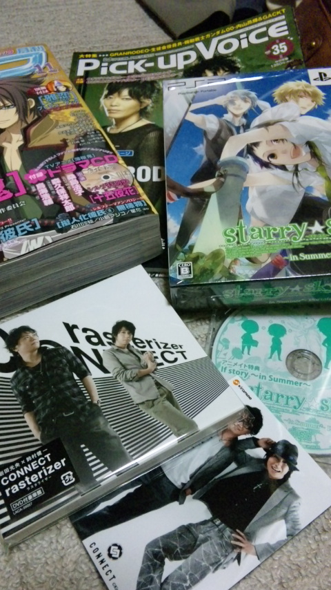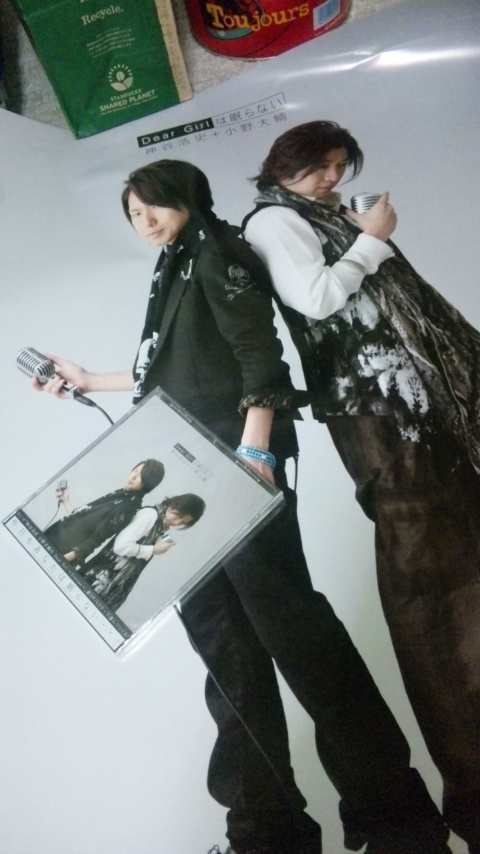 実は届くのをすっかり忘れてて(←) 家に帰ったらドデカイ箱があるから何かと思ったら! 青い店通販をするついでに…と思って頼んだんでした…!(←) ポスターでかっっ!!!(笑) や、このキャラホビでこのCDジャケットが公開された時叫びましたけどね! ちょおおおおおお何この人たちかっこいいんですけどおおおおおお…!!! ってなりましたけどね! えぇえぇジャケ買いですが何か!?(←←) 曲たちは…前回の熱愛~の方が個人的には好きですが(笑) てか神谷さん右側の髪形そんな遊んでるんだったら何故そっち向きじゃないんだwww …とブックレット見て思ったのは内緒ですwww